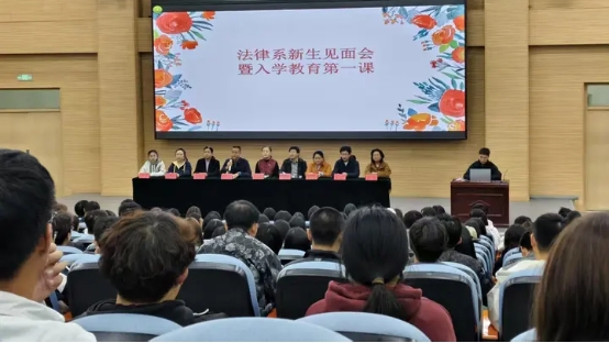 2025年10月16日晚,法律系党总支委员、新生辅导员在美术楼学术厅举行2025级新生见面会并讲授入学教育第一课。会议由副书记梁雪斌主持,梁书记分别介绍了参会领导的基本情况。系书记顾小英、系主任仝其宪代表全系师生致词、讲话;梁雪斌副书记重点强调了入学教育的意义和接下来的具体工作。见面会后,党总支书记顾小英做了入学教育第一讲:做有理想的优秀大学生。
