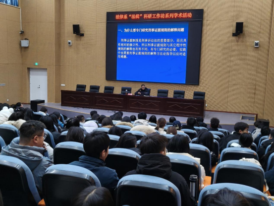 2025年12月19日19时,法律系兼职教授纵博于图书馆报告厅开展了以“刑事证据条款的解释原理与路径”为主题的学术讲座。本次讲座由公法教研室主任冯毛毛主持,法律系主任仝其宪教授同二百余位学生莅临现场聆听。