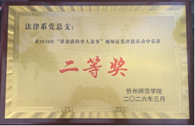 近日,忻州师范学院 2026 年“讲述我的育人故事” 视频征集评选活动结果公布,法律系党总支荣获二等奖。